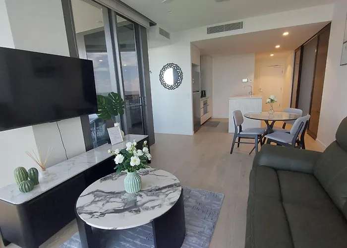 Situado en el distrito central de negocios de Brisbane, el Luxury Riverfront Apartment Level 38 Queen'S Wharf Tower Brisbane está a tan solo 7 minutos a pie del Myer Centre y ofrece un jacuzzi y una sauna para que los huéspedes se relajen. Además, este apartamento se encuentra a unos 500 metros de Queensland Treasury Corporation y al lado del Parque Roma Street.